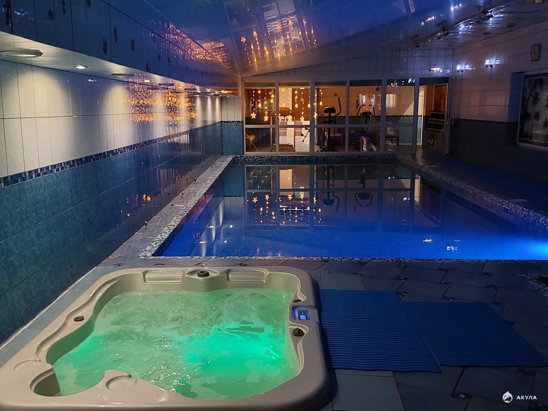 На территории комплекса комфортный семейный центр с тренажерным залом, сауной, бассейном. Аква зона более 300кв. м. Размер бассейна 10 на 5 метров, есть мужская и женская раздевалки и комната отдыха.