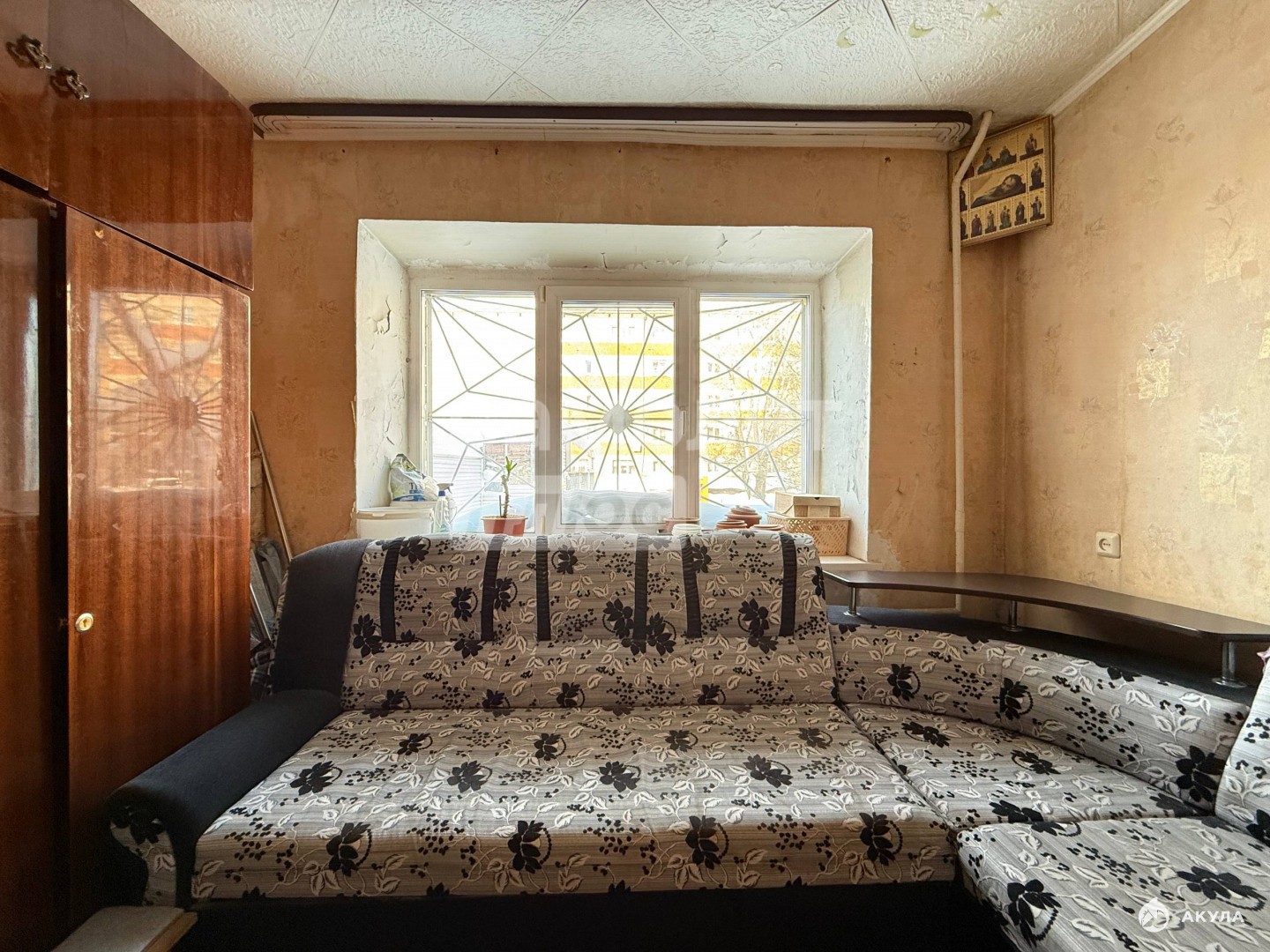Классическая квартира гостиничного типа. Очень много света в квартире, за счет двух окон. Есть полноценный санузел, что не характерно для такого типа жилья. Живет старенькая бабушка. Требует ремона.