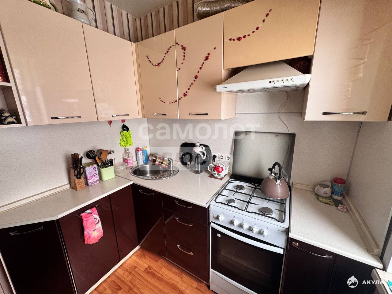 Полностью оснащённая кухня: газовая плита, вытяжка, удобный гарнитур. ️️️
