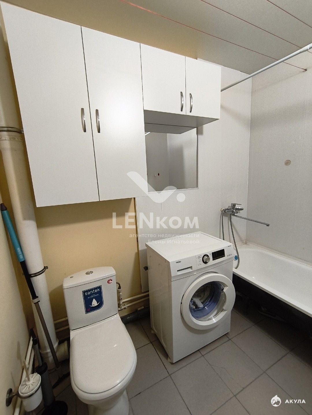 Ванное комнате частично выложено керамической плиткой и частично покрашены