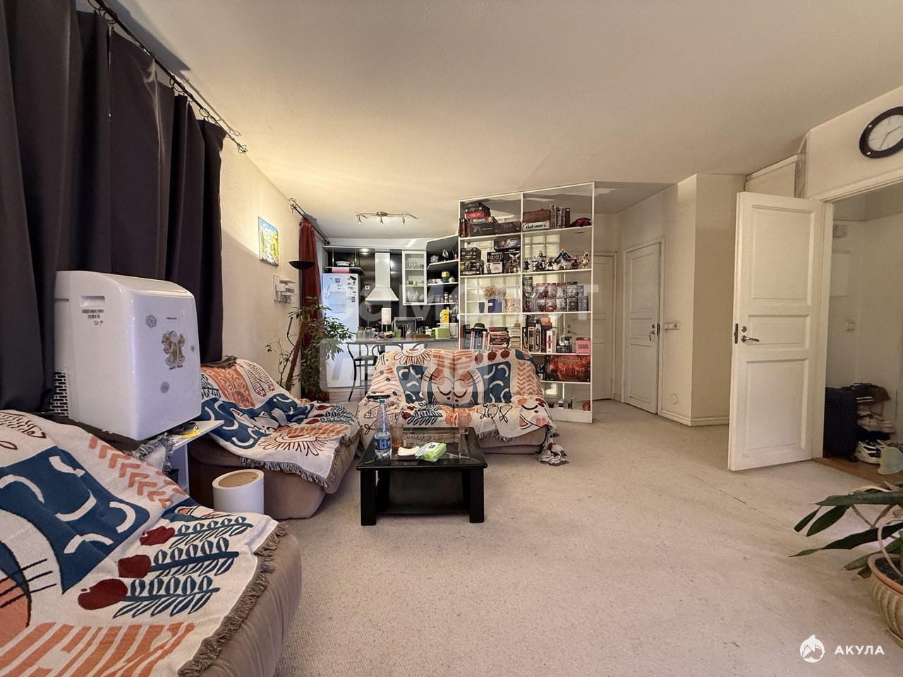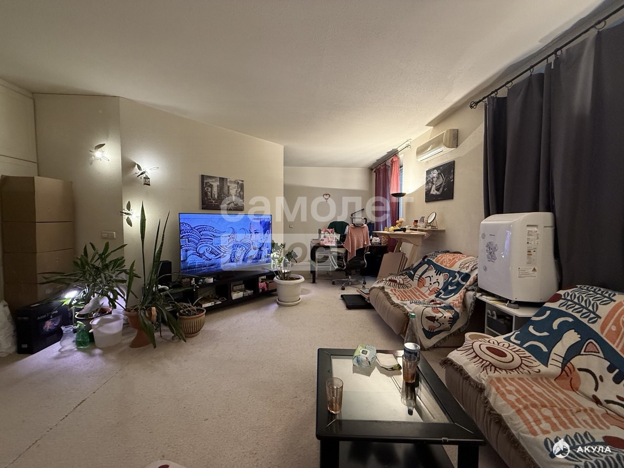 Организованно большое пространство в кухне-гостинной. Выделена уютная зона спальни. При входе в квартиру изолирована грязная зона. В санузле установлен джакузи, полностью выложена в плитку. Отдельно есть место под стиральную машину и бойлер. Установлен кондиционер.