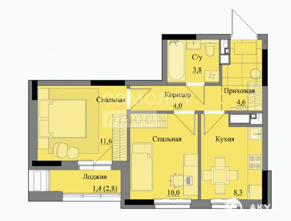 Количество комнат: 2