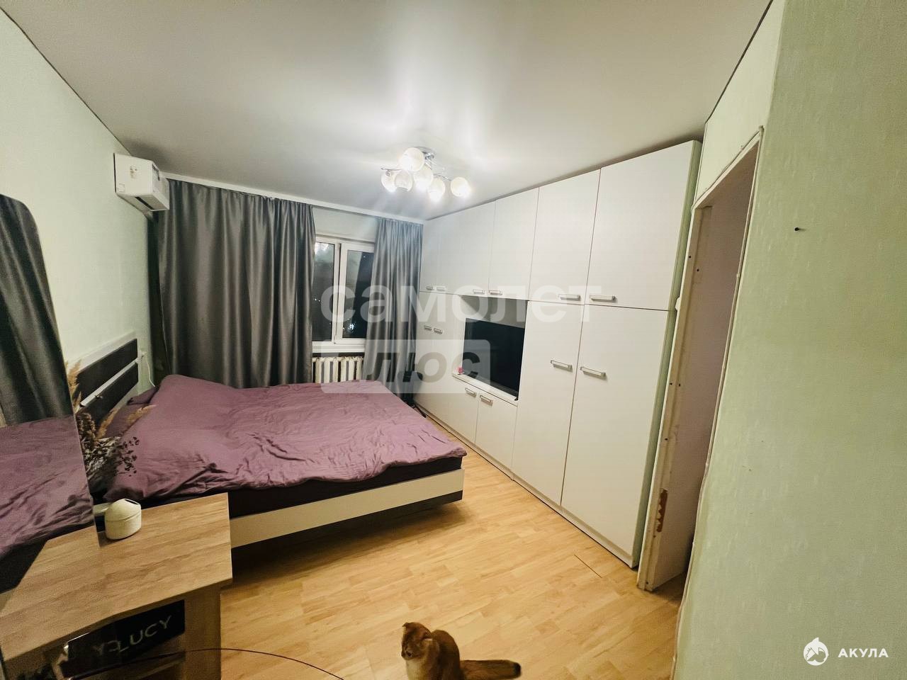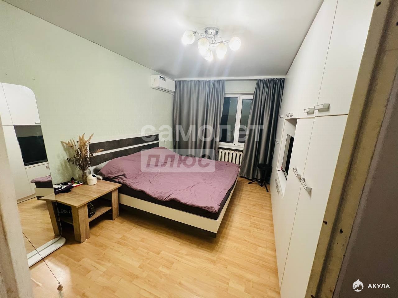 Квартира укомплектована-встроенные шкафы в двух комнатах и коридоре, два кондиционера, остается кухонный гарнитур с техникой, холодильник, посудомоечная машина с фильтром обратного осмоса,