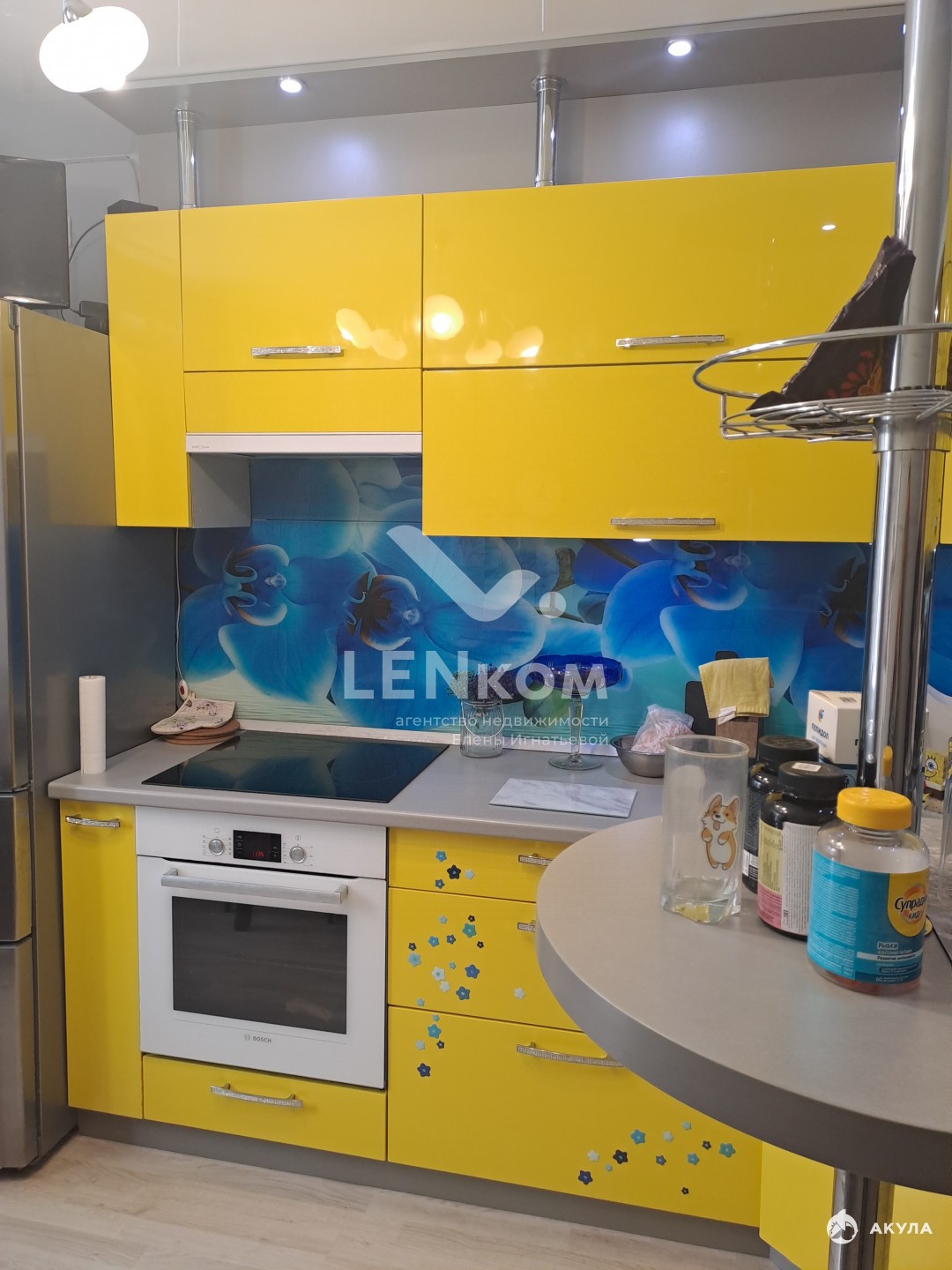 -квадратная кухня, остается в подарок кухонный гарнитур со всей встроенной техникой (духовой шкаф, посудомоечная машина, вытяжка);