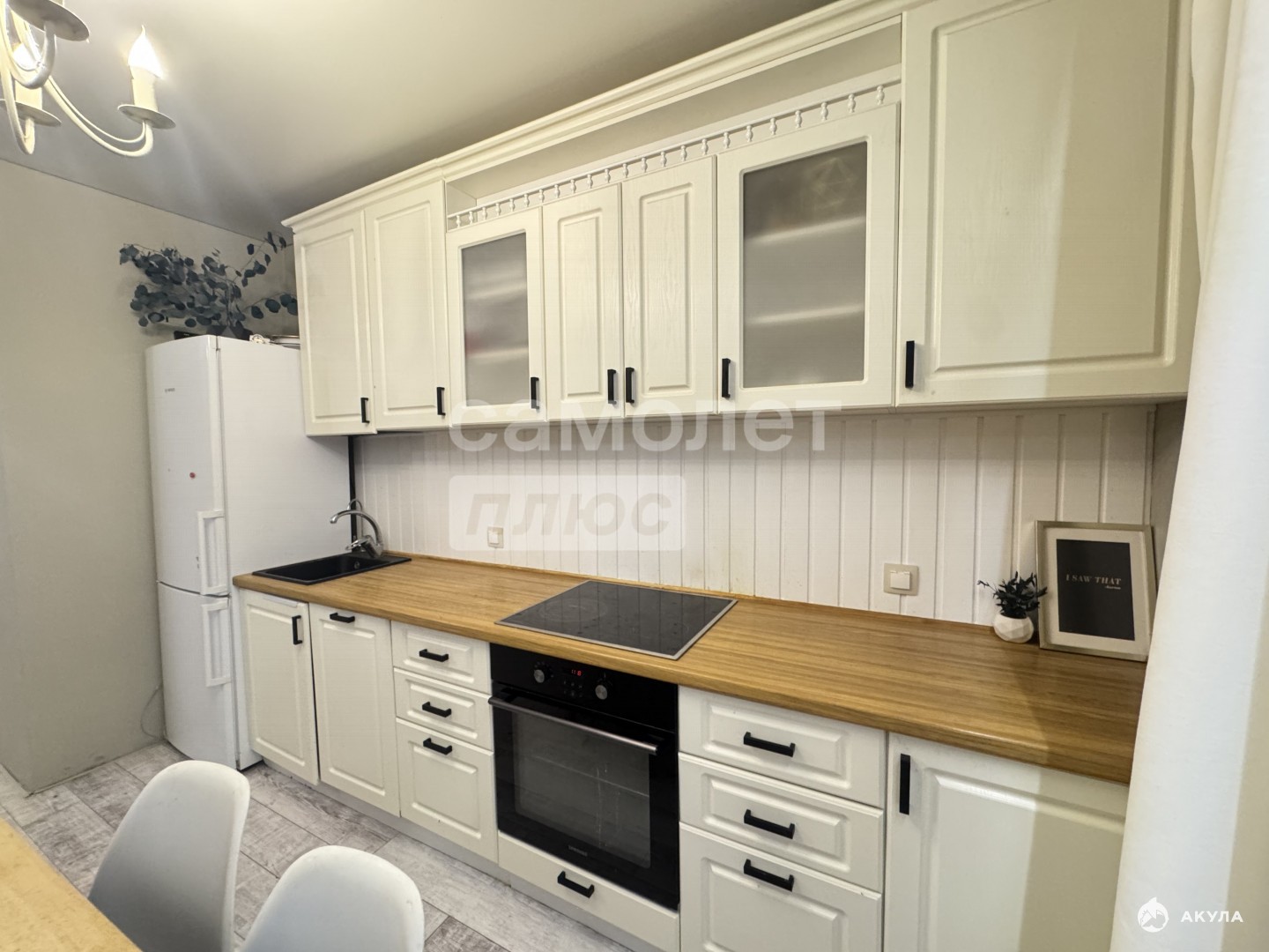Пространство наполнено светом. Здесь вас ждет встроенная техника (варочная панель, духовой шкаф, холодильник), стильный кухонный гарнитур, большой диван и телевизор — идеальное место для отдыха и приема гостей. Две уютные спальни: