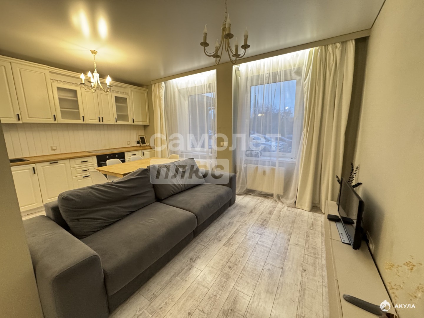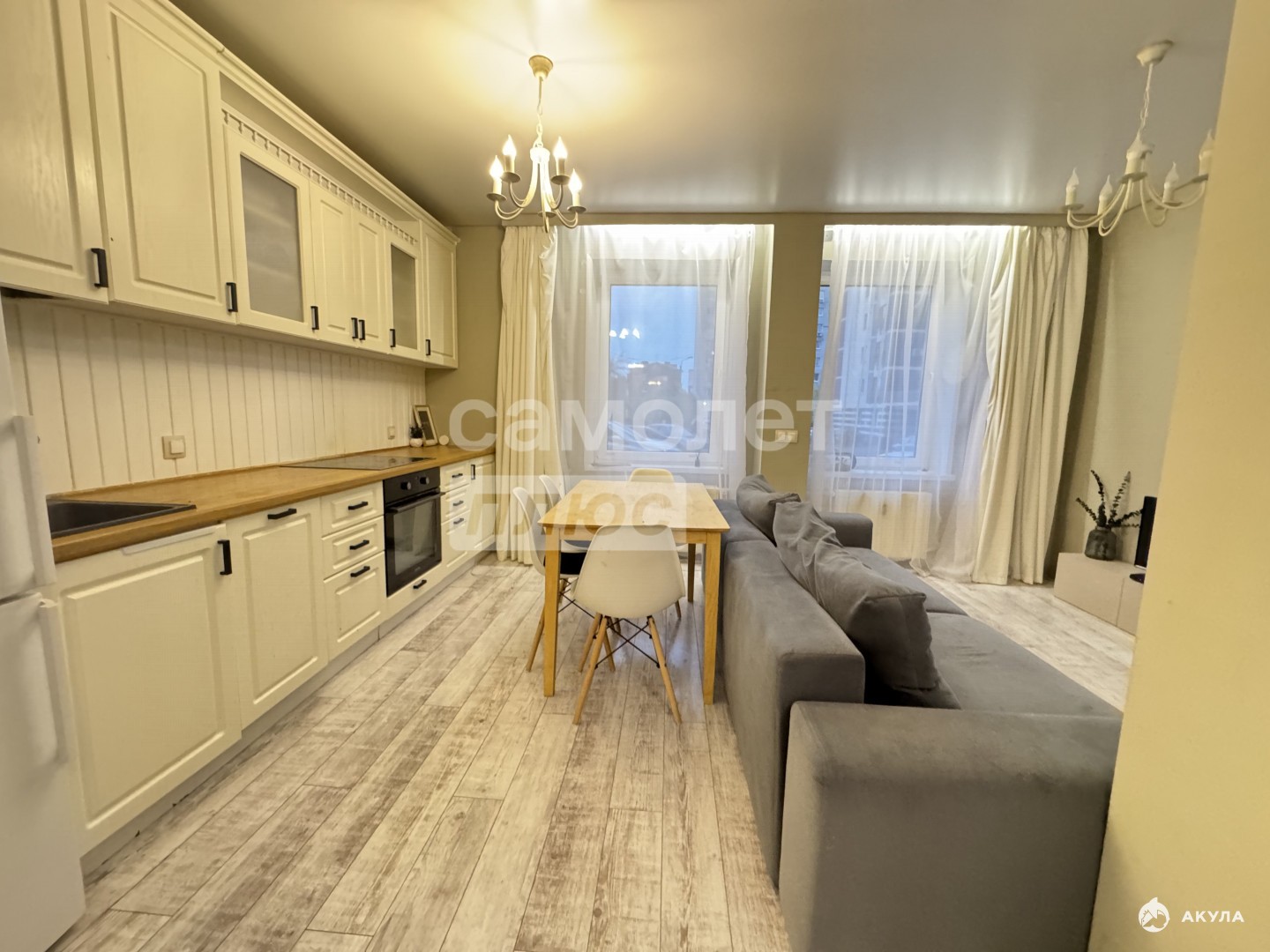 Вам не придется тратить время и деньги на ремонт и покупку мебели! Заезжайте и начинайте жить с комфортом. Светлая кухня-гостиная: