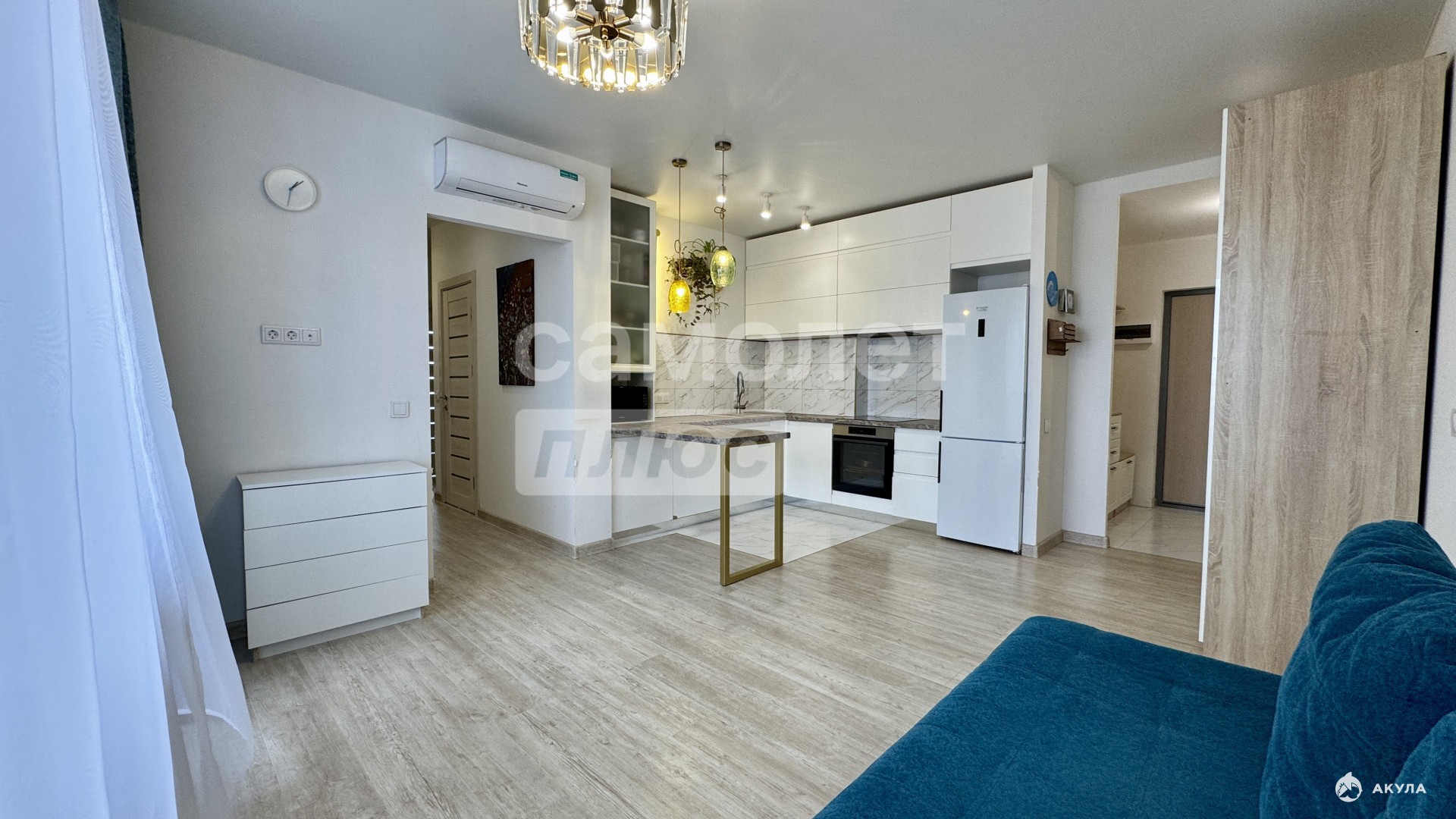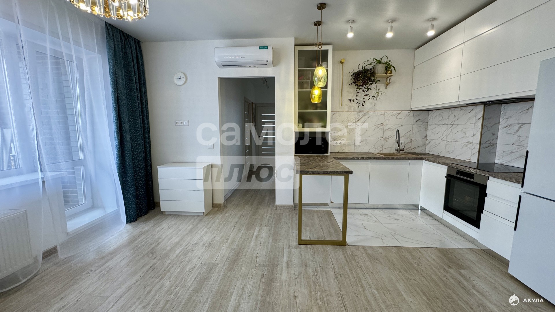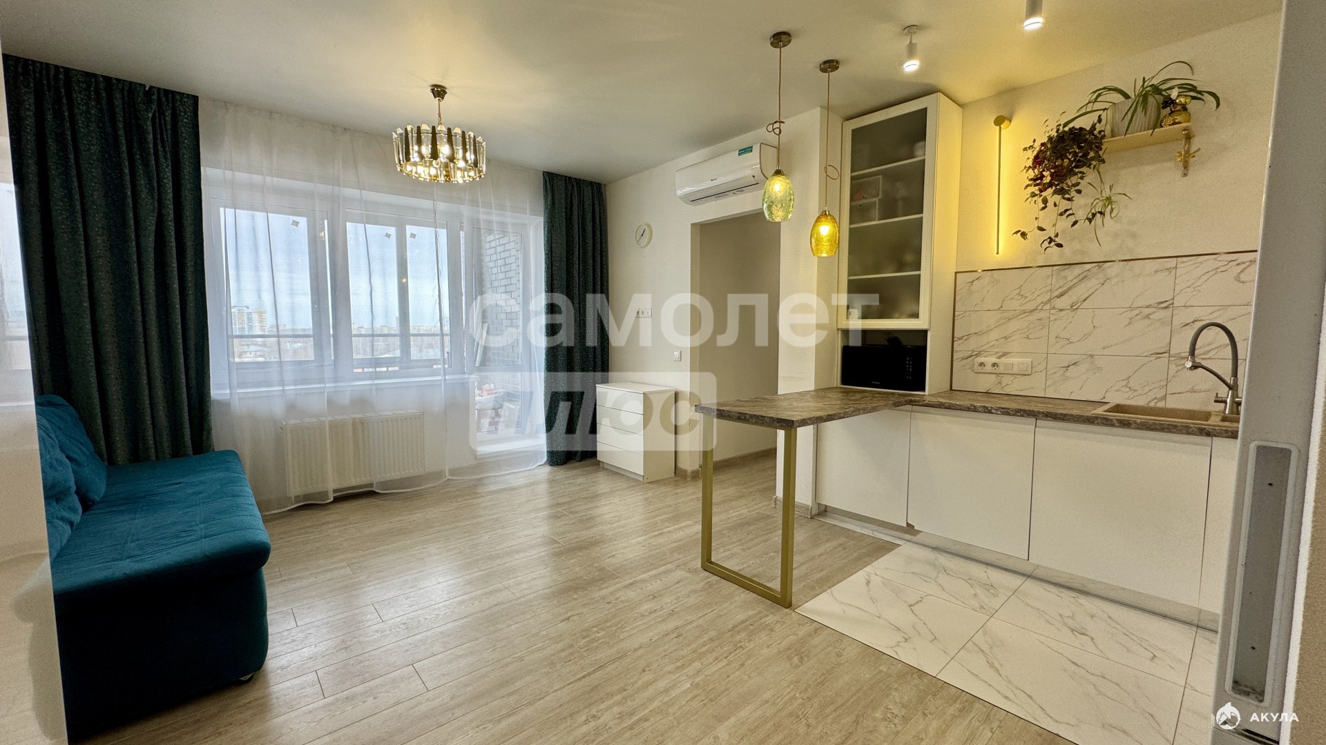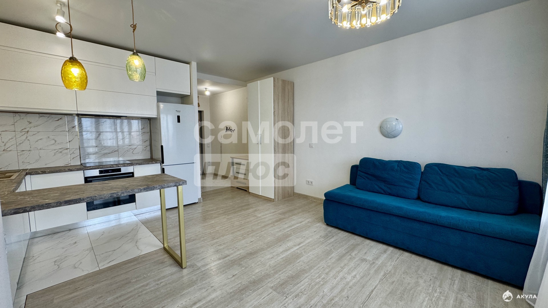 Квартира готова к проживанию, с ремонтом и кухонным гарнитуром, в котором предусмотрена вся необходимая техника. Также остаются вместительные шкафы.