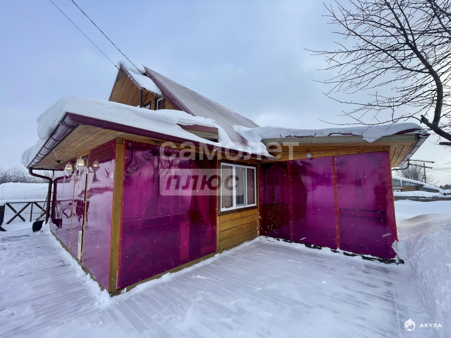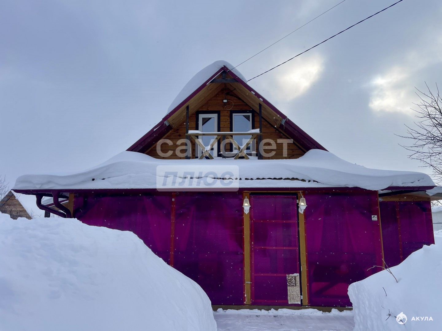 1 этаж (43 м²): уютная кухня-гостиная (11.2 м²), отдельная комната (7.8 м²), санузел с душевой кабиной, собственная сауна (3.6 м²) и котельная.2 этаж: просторная спальня (20 м²).Зоны отдыха: закрытая веранда (10 м²) для посиделок в любую погоду и две открытые террасы (12.5 и 7 м²) для солнечных дней.Важно: на фото террасы закрыты розовым поликарбонатом — это временное решение на зиму для защиты от снега.
